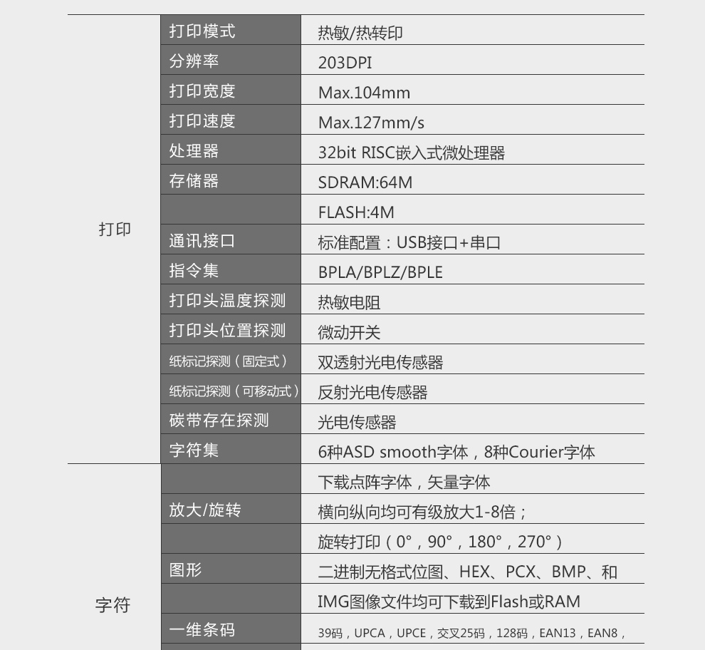 | 條碼打印機(jī)分辨率 | 203dpi |
