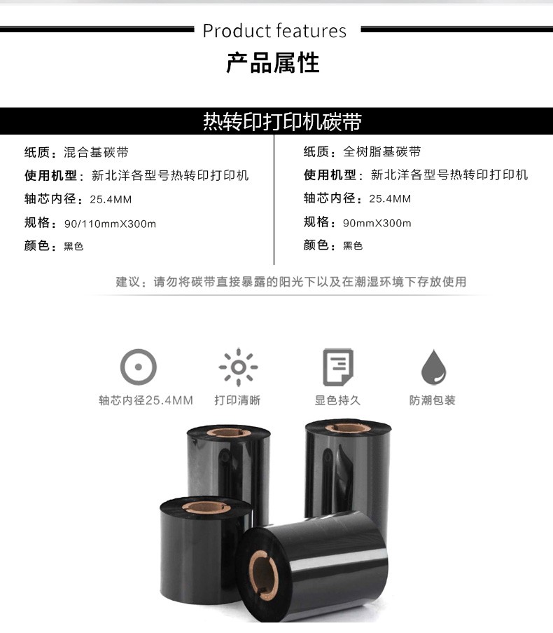 熱轉(zhuǎn)印碳帶色帶、條碼機(jī)標(biāo)簽機(jī)碳帶、混合樹脂基